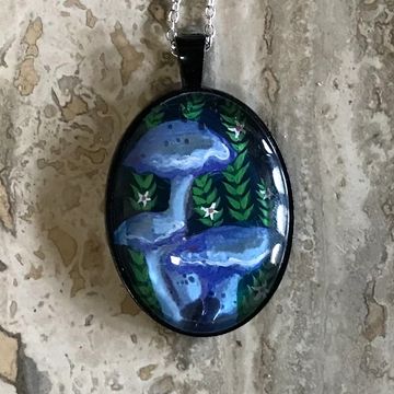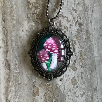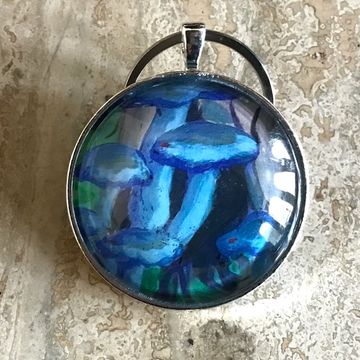A close up of the mushrooms from my Consumption painting set in glass. 2 inch diameter.