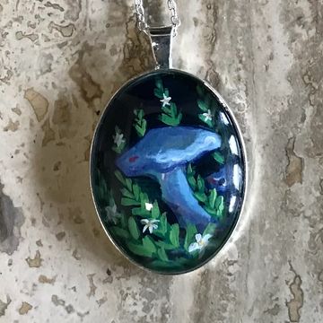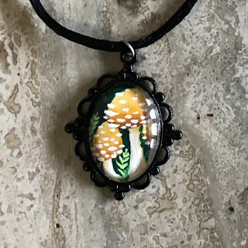Hand-painted necklace set in glass. This