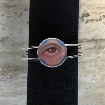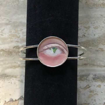 Hand-painted bracelet set with a glossy finish. 1 inch diameter.