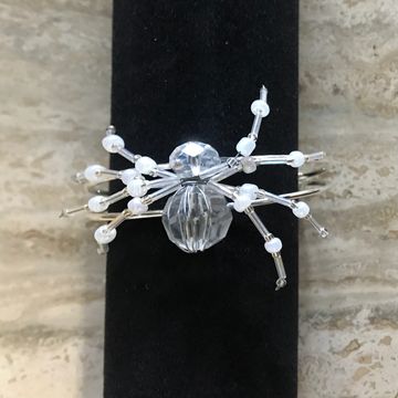 Handmade spider charm of glass beads. Roughly 1 inch diameter.